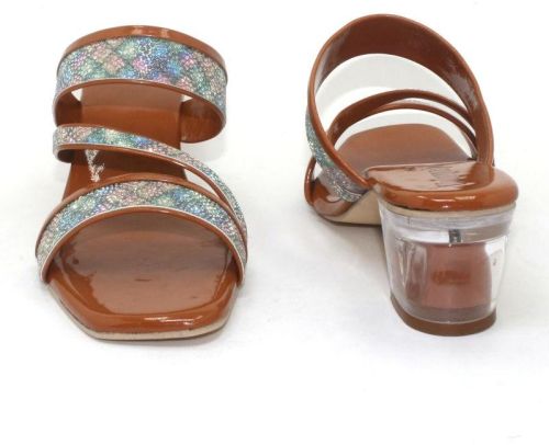 Ladies Brown Party Heel Sandal, Sole Material : PVC