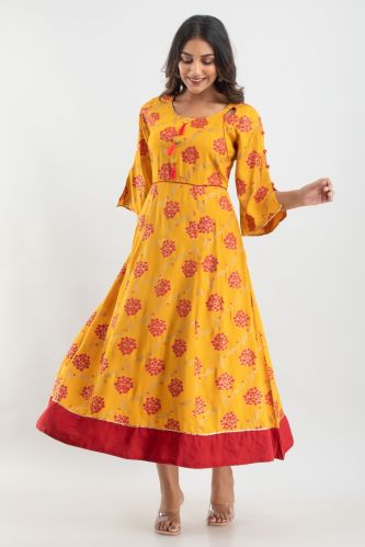 Ladies Fancy Red and Yellow Frock Long Kurti