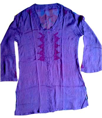 Light Violet color Ladies Top with front side and both sleeves have hand-embroidery works by German zari threads and sequins. Specifications :- Have also 3 quarter sleeves.It has excellent royal looks and very comfortable to wear with any Pants.Have various colors.Size :- 26 - 40.Price :- $