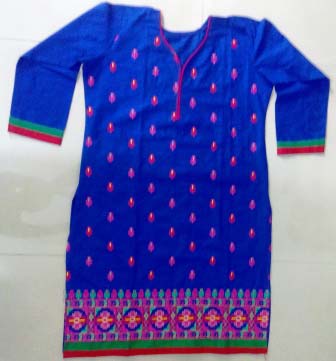 We are one of the leading Manufacturers, Exporters and Suppliers of Ladies Kurtis in Ahmedabad, Gujarat. Our Kurtis are stitched using premium fabric and the latest stitching machine in order to assure the finest quality. Our Kurtis are available in a variety of designs, colors and sizes as per the requirement of buyers. One can avail Ladies Kurtis from us at the most reasonable prices in the market.