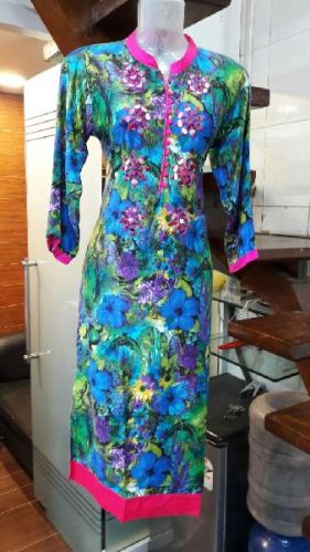 We make available Ladies Kurtis in customized sizes and various appealing colour combinations. We have abundant dealers, distributors connected with us to ensure our goods are obtainable for purchasers, and deliveries are made on time. Since our strict packaging guidelines, we make sure that the products are suitably packed assuring zero damage during transportation. Furthermore, our packaging professionals thoroughly check the whole batch before making the final transmit.