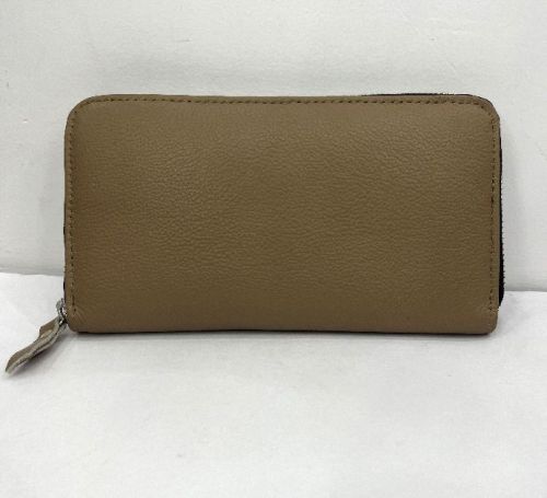 Beige Ladies Leather Wallet, Closure Type : Zipper