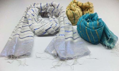 Vivid color combinations, colorfast, and above all skin-friendly fabric- this is what distinguishes our Ladies’ Lurex Scarves in the market. Our trendy range of Ladies Lurex Scarves can uplift even a simple look. Owing to our vast distribution network, we have come up as one of the trusted Suppliers, Exporters and Manufacturers of Ladies Lurex Stoles. Based in New Delhi, we are offering Ladies Scarves at the best prices.