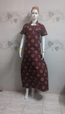 Ladies Maroon Collar Cotton Nighty, Technics : Machine Made