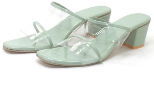 Rexine Plain Ladies Olive Heel Sandal, For Party Wear, Sole Material : PVC