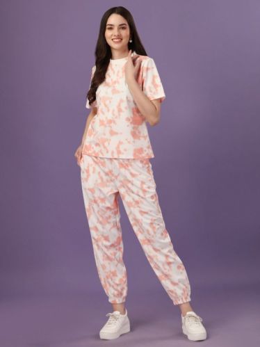 Ladies Peach Cotton Lycra Digital Printed Co-Ord Set?