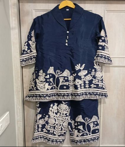 Ladies Rayon Printed Cord Set, Color : Blue