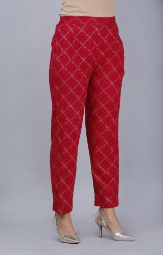 Ladies Rayon Regular Fit Printed Pant, Color : Red Casual Wear