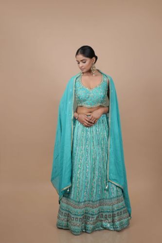 Ladies See Green Viscose Lehenga Choli, Technics : Machine Made