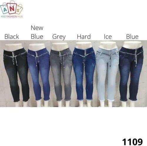 Ladies Stretchable Jeans, Color : BLACK BLUE HARD ICE GRAY