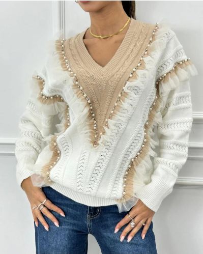 Ladies V Neck Beige Sweater M, Xl Non Zipper, Specialities : Impeccable Finish, Dry Cleaning