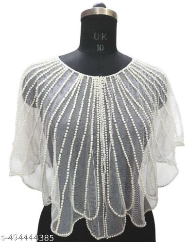 Polyester Ladies White Designer Fairy Poncho Free Size Party Wear