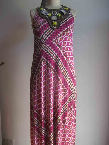 We are offering 2014 wholesale made in china high quality lady printed halter long length beaded dress. The product range includes suits, sportswear, pants, jeans, jackets, trousers, t-shirts, blouses, skirts, dresses and underwear in men¡¯s and women¡¯s collection. Fashionable, comfortable, high quality color: can be customized loading port: shanghai packaging: standard exported packing or as your request