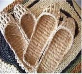 entirely handmade woven straw slippers from husks of corn by chinese craftsmen;