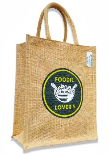 Laminated jute bag. Special print foodie lover. Cotton rope handel ecofriendly yarn, Size : H-12" x W- 10" x Side- 7" or 8" inches, The benefits of ussing this Bags Reusable. Environmentally friendly. Do not require maintenance. 100% bio-degradable and recyclable Cost effective and cheaper than plastic and paper bags. Strong and can carry more weight as compared to promotional carry bags. Durable and long lasting, not easy to tear like Plastic and Paper bags do. Jute and Canvas has good insulating and antistatic properties, low thermal conductivity and a moderate moisture regain.