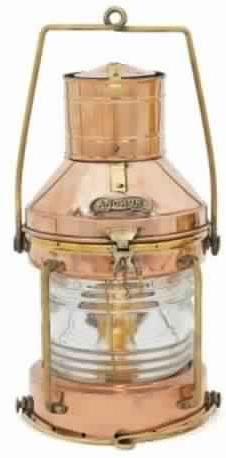 Leading manufacturer of Copper ship lanterns aladean offers you this Large Nauticala themed Anchor ship lantern, A perfectly working nautical lantern hand made in heavy gauge solid copper, we offer a choice of a traditional oil burning lamp or a electric light fitting,