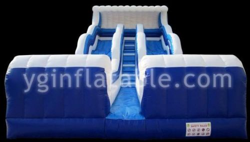 We are manufacturers of large inflatable slide. Product Name: Large inflatable slide, Dual- slide Product No: GI144 Size: 11mLx5mWx5.5mH Pack: 80x80x130cm Weight: 240kg Material: 0.55mm PLATO PVC Tarpaulin Cert: CE, SGS, En14960, En71