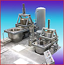 Vessel inside diameter up to 1750 mm (68.9 inches) High displacement triplex plunger pumps up to 250 MPa (36,250 psi) Wire wound pressure vessel and yoke frame design for high pressures combined with large vessel diameters Large fluid handling systems for one or several CIP units (emulsion oil dosing, large area filters, etc.) Ancillary equipment for mold handling and washing, transfer, etc. (integration in automated lines)