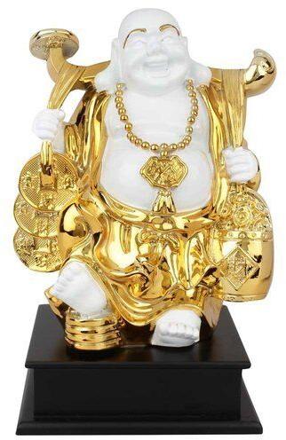 Earthenware Laughing Buddha Statue, Color : Golden (Gold Plated), Multicolor
