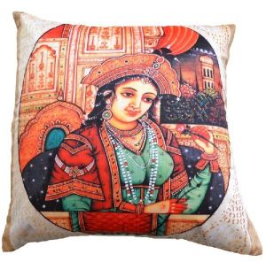 MORE INFO Size: 24 X 24 in. Fabric: Lavender, Off White, Golden Thread weaved cotton front with matching lavender colored rayon silk back Lavender silk look piping finish Concealed Zipper Pillow Insert sold separately Dry Clean recommended