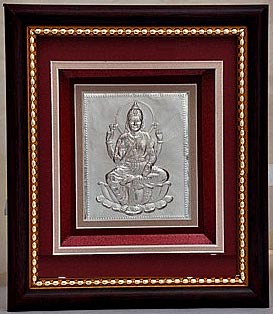 We are offering laxmi frame - (1 no.) etc. we offer 1 no. Frame. Purely 999 silver made for divine and gift purpose. Embossed silver figure of laxmi in frame size 14 cm height and 12.5 cm breath. Also available I all types of religious gods