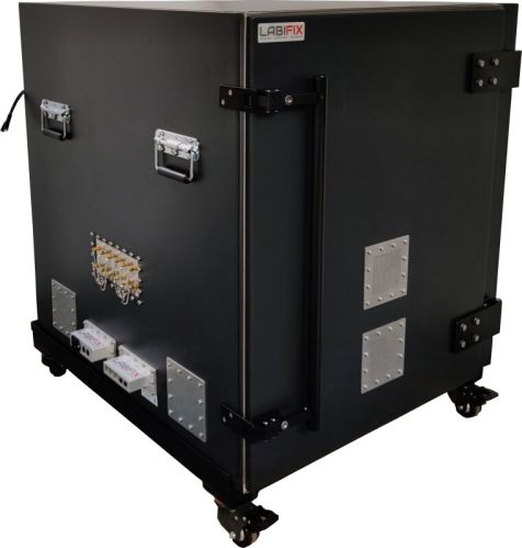 Contact SupplierThe LBX9100 RF Shielded Test Enclosure is ideal for testing and measuring wireless, Radio Frequency (RF) communication devices. Furthermore, the test enclosure can be easily moved around on heavy duty caster wheels, making this product suitable for any testing application. Furthermore, the pyramidal RF absorber dampens unwanted signals. Despite its spaciousness, the unit offers a high shielding effectiveness of >100dB, allowing larger devices to be tested. A honeycomb air vent ensures that the device under test (DUT) does not get overheated and that proper air circulation is achieved.