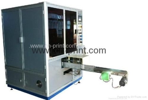 This screen printing machine intergrates automatic feeding device, flame treatment and UV curing system and so on.