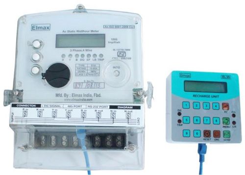 Contact SupplierElmax India brought a high tech product with the launch of its model EL32 stand alone prepaid energy meter. It is a micro process based intelligent meter that take independent decision by itself for controlling max demand and low balance payments accounts. It makes LAN communication through Rs port with remote CRU. Meter gets recharged through CRU by feeding of coupons with the help of front panel key board of CRU unit. Meter transmits energy data, load details and payment details to CRU for display on its screen. Meter also sends alerts to CRU on overloading and on low balance in accounts. It trips the supply automatically in cases of either max demand crossed or inadequate balance in accounts. It gets re-set through CRU enabled switch. Meter also get emergency recharge through CRU based switch once on each recharge for a specified amount as desired by the user.
