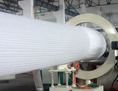 epe foam sheet extruder line introduction: the l/d of screw is 55: 1. The raw material is high pressure and low density polyethylene. Through extruding system basis on formulation the raw material and the auxiliary material are transported into hopper by auto feeding system. The gms will be injected into barrel by the pump as anti-contractor agent. Butane pump inject the liquid butane into the screw barrel and foam. The temperature is dropped by the barrel then the products will be extruded from the machine head. Fixed and cooled by fixing drum then after processed by expanding system, haul-off system and winding system. According to the demand for length by customer, automatically warned by meter counter, and then change rolls automatic. After make record of the weight and packed can be delivery to the warehouse.