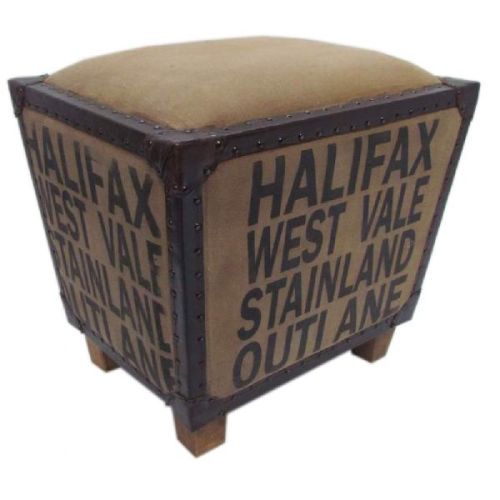Superbly manufactured Canvas ottoman with the combination of leather,eco friendly mango wood.iron, metal rivets and printed canvas is giving a very magnetic effect.It is as cozy as it is stylish.