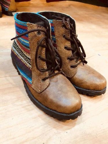 100% Leather, dark brown color, men booth. Heavy nylon sole on buttom. Strong, durable and fashionable designs shoes