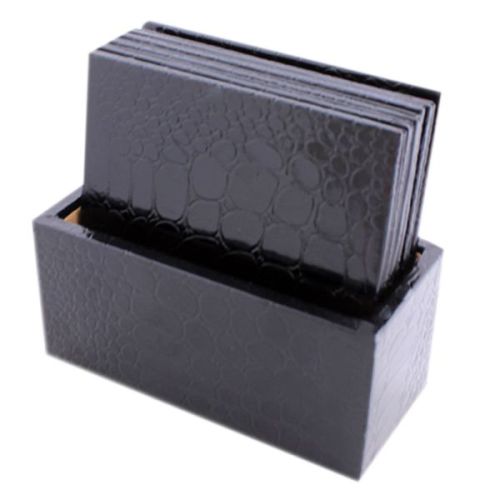 1. It has a Sturdy wooden structure and a high quality exterior faux leather.2. It has been beautifully designed to give an elegant and sophisticated look.3. Great for Corporate Gifting, Office/Home Desk Decor.4. Approximate Dimensions: LxBxH: 11x10x5 cm, Material: Leather. Number of Coasters: