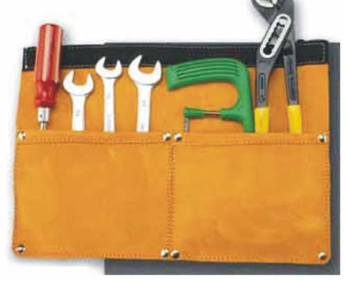 This split Leather Tool Bag has 2 pockets and adjustable nylon belt with quick release buckle. Our leather tool bag is double stitched and provided with extra rivets for added strength.