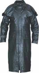 Zeek Traders is a classic 'Matrix' style trench duster with zipout liner, Leg Straps, and removable cape. It is offered here in our famous and durable buffalo leather.