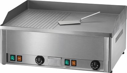 Electric grill.. plate size: 650 X 480 mm. 1/2 smooth + 1/2 grooved. . temp: 50 ~ 30 °c. 2 control thermostat. . power: 3n / 400 v / 50 - 60 hz / 6 kw. . net weight: 40 kg / gross weight: 53 kg. . stainless steel aisi 304 work surface 15/10 thick.. dimension: 664 x 570 x 300 mm.