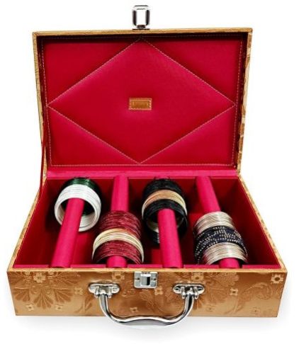 Contact SupplierMaterial and Design - This Premium Bangle box gives a Premium and unique feeling while holding all your precious essentials in one place. Made from PU leather and MDF, the inside of the box is lined with velvet to keep your all Bangles safe. Gifting on Occasion - It is a classic choice for classic people who want to gift to their mother, sister, wife, friend and relatives on the occasion of mother 's Day, wedding anniversary, valentine 's Day, Birthday, engagement Day and festive season. Quality - it is tough outside but soft inside for keeping your accessories safe from outside to inside as the Ledo provides the best quality of material you can blindly and happily trust it and worth it. Speciality - you can not only keep bangles but also keep bracelets and wrist bands. It has a lot of space and bars to keep your bangles collection and other accessories.