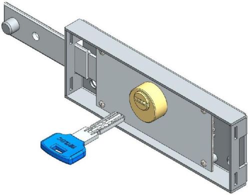 The shifted lengthened bolt available with 6mm hole. • single turn, 3 pins cylinder lock • interchangeable: with most common rollershutter locks available on the market. The reinforced bolt    makes the roller shutter more resistant toattack.• available for motorized roller shutter• reinforced steel bolt: 2mm steel platedfolded back on itself to reach overall 6.5mm thickness•solid brass cylinder • 3 brass computer key with plastic handgrip• rustproof zinc plated box and components item no. A b pins finish qty/box cl02.05 155 55 3 galvanized 6