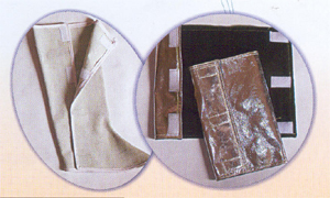 of soft and even thickness leather with Velcro fastening for Protection against sparks during welding or in machine shop. For protection against heat or hot metal, Asbestos leg guards are used.
