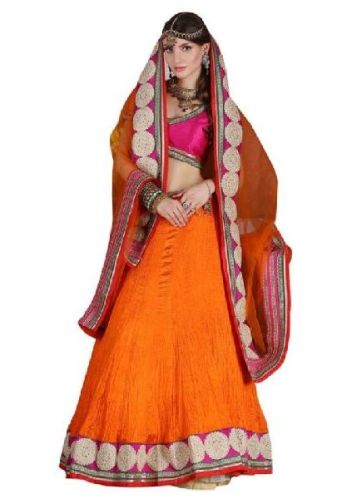 Gorgeous designer lehenga made from NET in gorgeous embroidered method available in orange color with heavy work where the dupatta made from NET and blouse with DUPIAN enhance the beauty of this this lehenga.