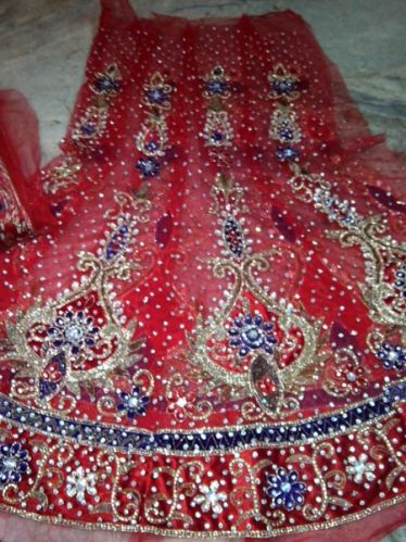 We are offering lehenga. casual wear  red colored lehenga , choli  , dupatta : net saree semi stitched ,designer blouse. Stone work,  designer lehenga saree delighting every occasion.  Â