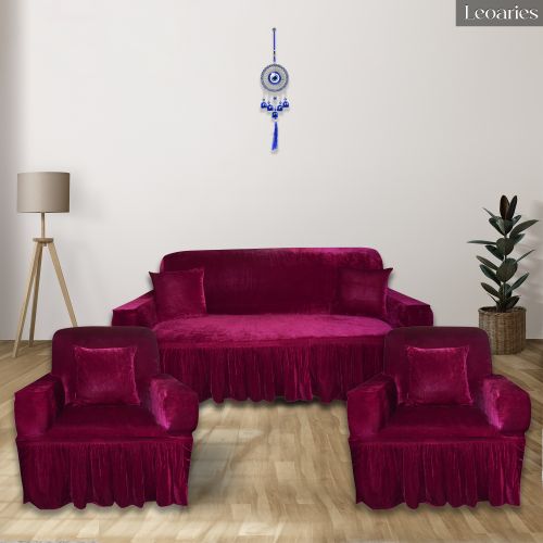 Plain Leoaries Velvet Dark Pink Sofa Cover Standard