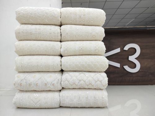Lucknowi Chikan Embroidery Fabric:-  Lucknowi Embroidery also called as Chikankari is orginated from Lucknow, India. It is one of Lucknow’s best known textile decoration styles. Chikan is a delicate and artfully done hand embroidery. A perfect fabric for sarees, anarkali, salwar kameez and lehenga choli. It can also be used for casual wear to make kurtis, salwar kameez and tunics.