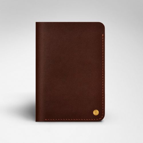 Description: A passport cover with traditional and rugged elegance. Hand-finished in Ascott by Tannerie Masure, Belgium, one of the finest bark-tanned leathers in the world. 100% leather, no lining used; the flesh-side suede of the leather visible inside.