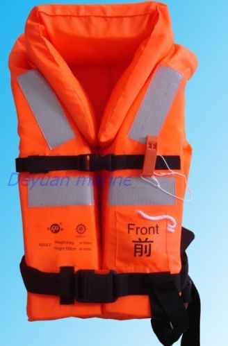 We are offering life jacket material:cover:pu & polyester compound inside: epe foam size:length 550mm width:270mm weight:0.74kg buoyancy: >147n accessories: wistle, lifejacket-light, shotline. Packing:10piececarton carton