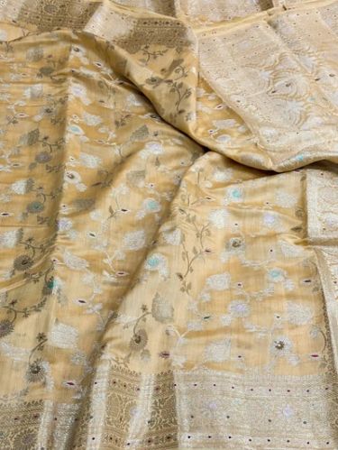 Contact Supplierwrap yourself in luxury with our light mustard intricate meenakari chiniya silk saree. made from 100% pure silk and certified with the silk mark, this saree exudes elegance and exclusivity. the intricate meenakari design adds a touch of artistry to this premium saree, making it the perfect addition to your wardrobe. fabric - chiniya silk authenticity- silk mark certified pattern - meenakari work colour - light mustard saree - 5.5 mtr blouse - 1 mtr