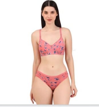 Nylon Lily Printed Lingerie Set, Color : Light Pink