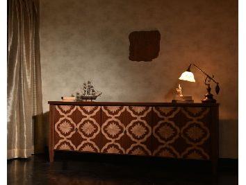 A straight line sturdy piece crafted with a symmetrical wood- on- wood inlay work in front. Fine highlights in the copper inlay further accentuate the design and emphasise the details. It also adds a stylish touch to this sideboardThe sideboard is designed and crafted in a combination of wood on wood inlay & fine copper wire outlines finished in natural color & PU finish