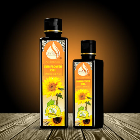 Pure Cold press Sunflower oil keeps the heart-healthy. It is rich in oleic acid (mono-saturated fatty acid – MUFA) with 80% content, which keeps the cholesterol low and thus prevents cardiovascular diseases. Due to this reason, it is used as cooking oil by many people.