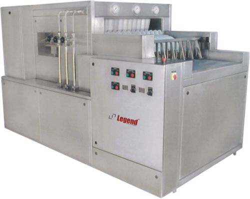 AUTOMATIC HIGH SPEED LINEAR BOTTLE WASHING MACHINE (TUNNEL TYPE), Machine totally fabricated from SS Materials, including the basic frame.High-pressure spray nozzles ensure perfect wash of Bottles.All contact parts (washing zones jet) are made from SS 316 materials.Water re-cycling arrangement is possible as per customer’s requirement.Machine equipped with safety devices to ensure smooth operation with high output.