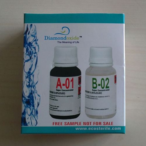 Diamondoxide is a two‐component kit that creates a chlorine dioxide (0.5% clo2) concentrate when mixed in ordinary tap or potable water. diamondoxide is a convenient, economical and safe method to produce clo2 in solution without generating by‐products such as chlorite, chlorate, chloride or free chlorine. It is non‐explosive and has almost no decay during first 60 days. the shelf life in liquid generating chemical form is 1‐2 years, depending on storage conditions. like ozone, clo2 is soluble as a true gas. because it is a true gas in solution it is easily diluted into target water as a biocide. clo2 can penetrate bacterial slime layers (biofilm) and destroy pathogens. it does not form toxic and carcinogenic chlorination by‐products. nor does it produce a build‐up of toxic organic or inorganic by‐products, such as bromates, thm’s, haa’s and mx. this makes clo2 one of the most eco‐friendly biocide available.